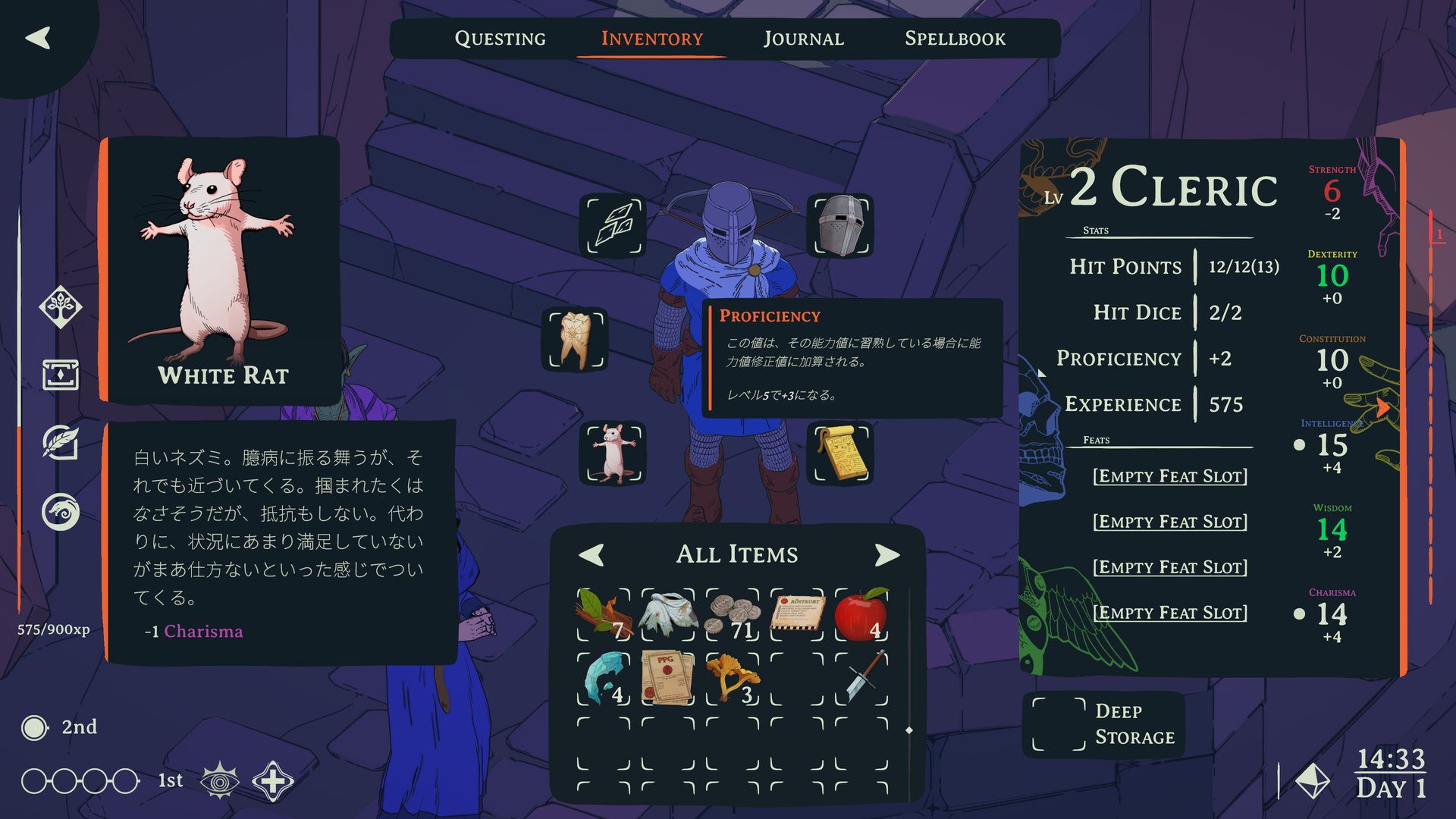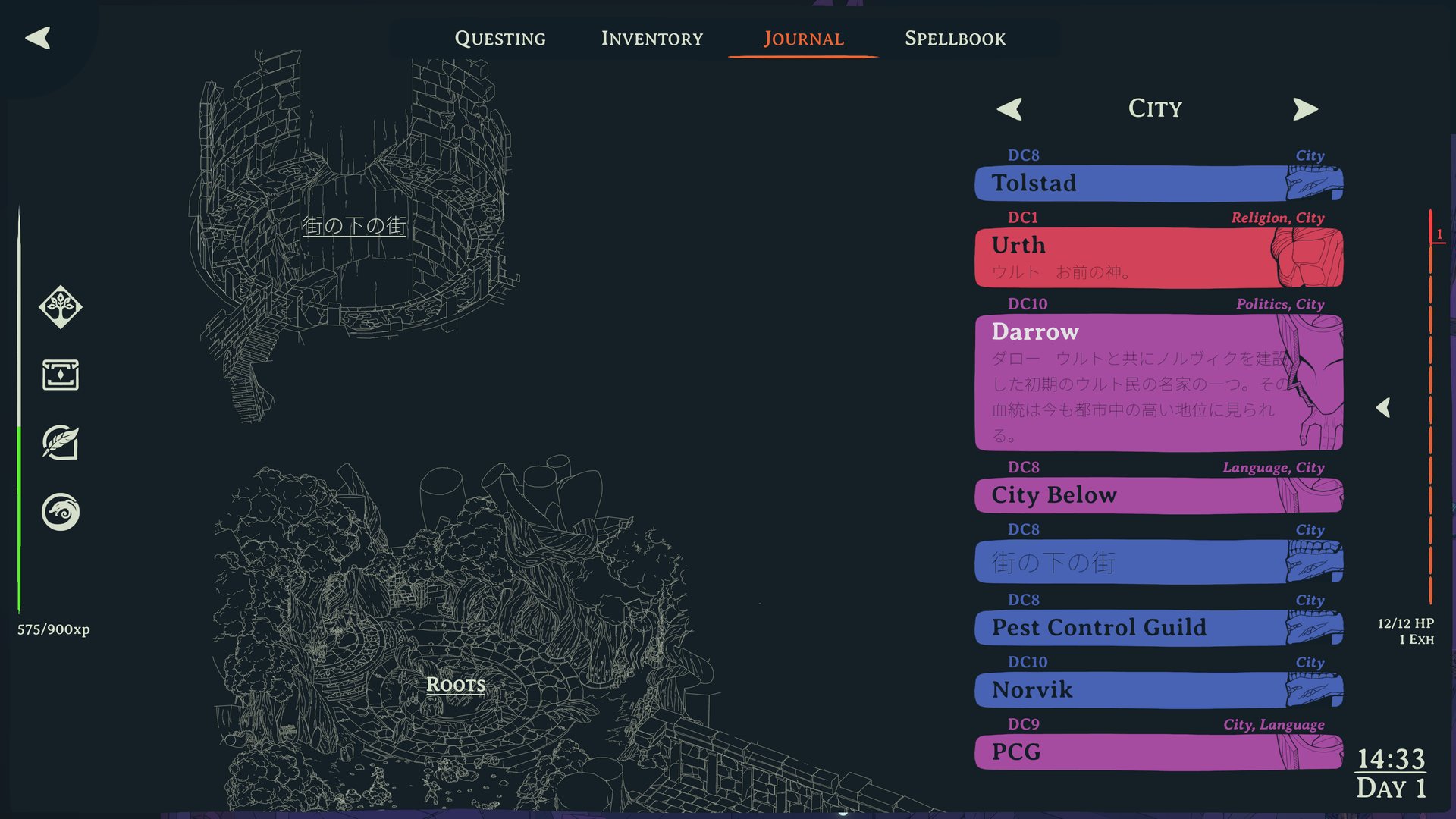 Esoteric Ebb is a dark fantasy RPG with a massive script — tens of thousands of lines of translatable dialogue and choice text, plus thousands more UI strings, lore entries, spell descriptions, and quest journal entries. The main story dialogue is essentially complete. All major questlines, character conversations, and branching choices have been translated. The game is playable in Japanese from start to finish.